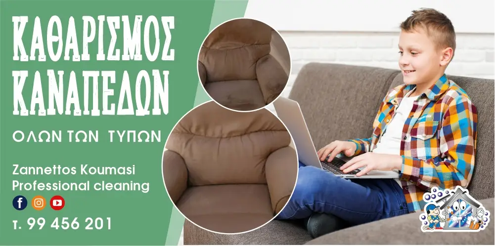 Το συνεργείο καθαρισμού Zannettos Koumasi Professional Cleaning Services εγγυάται τον αποτελεσματικό καθαρισμό του καναπέ σας, ανεξάρτητα από το υλικό του (ύφασμα ή δέρμα), χρησιμοποιώντας την πιο σύγχρονη τεχνολογία: